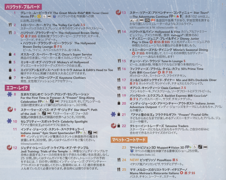 ディズニー・ハリウッド・スタジオマップ(2017年4月現在)